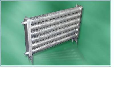 翅片散熱器在翅片結(jié)構(gòu)形上可分為繞片、串片、焊片、軋片.目前使用最廣泛的是鋼鋁復(fù)合型翅片管,它利用了鋼管的耐壓性和鋁的高效導(dǎo)熱性能,在專用的機(jī)床上復(fù)合而成.其接觸熱阻在210℃的工作情況下幾乎為零.鋼鋁復(fù)合管具有其它類翅片管散熱器不可替代的優(yōu)勢(shì).