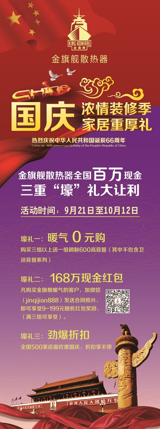 1. 金旗艦散熱器全國(guó)百萬(wàn)現(xiàn)金,三重“壕”禮大讓利